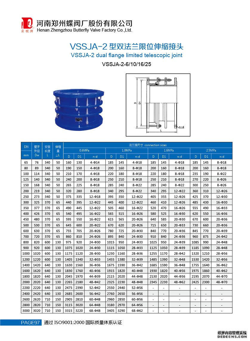 雙法蘭限位伸縮接頭管路補償接頭VSSJA-2松伸縮器鑄鐵